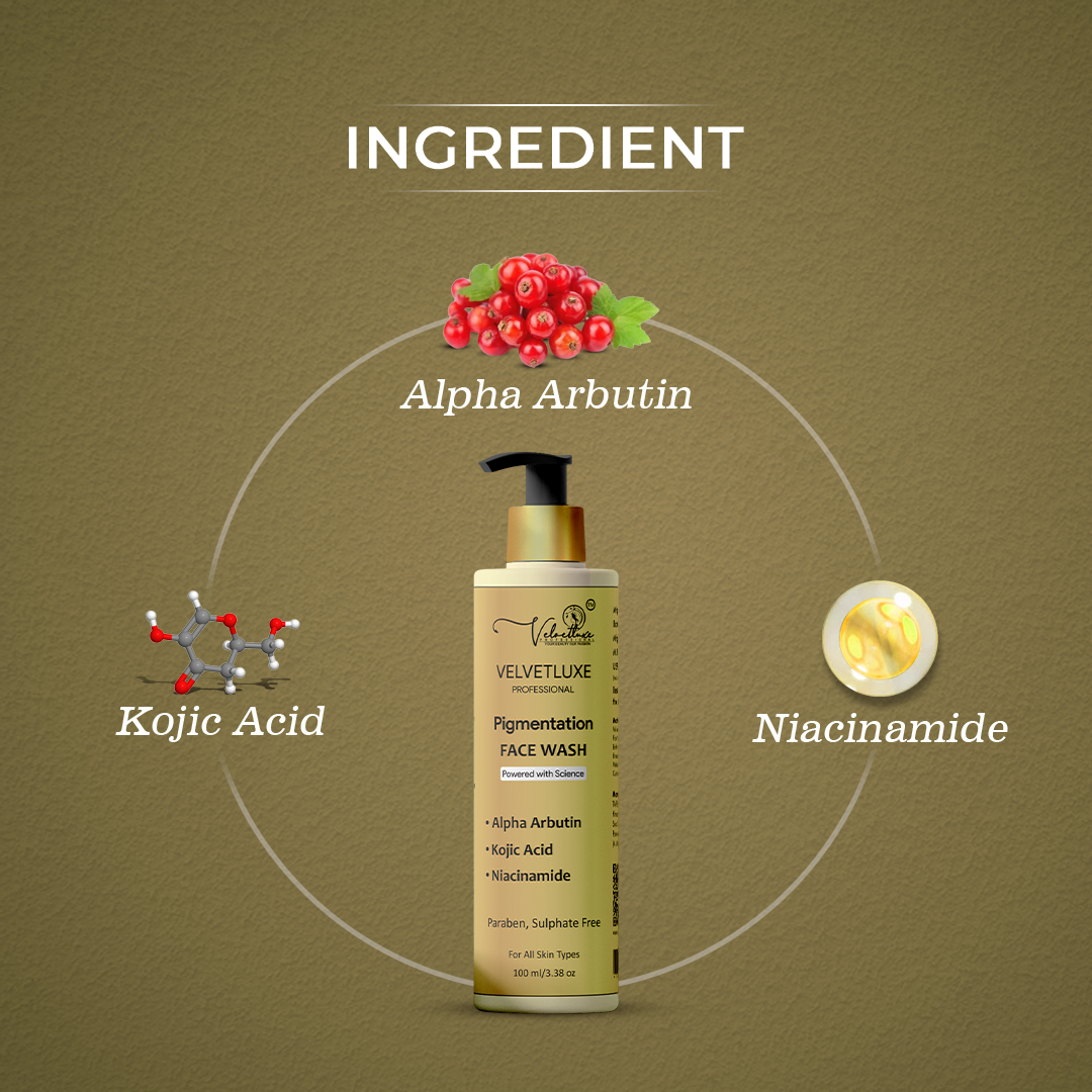 Specially formulated for pigmentation-prone skin, Velvetluxe Pigmentation Face Wash combines Niacinamide, Licorice Extract, and Hyaluronic Acid to help reduce dark spots while cleansing gently. It supports even skin tone, boosts clarity, and maintains hydration with consistent use.